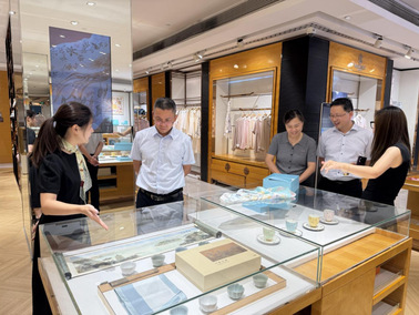 她细致讲解了馆内融合传统技艺与现代设计的丝绸作品—— 从古代帝王龙袍纹样复刻,到融入西湖元素、亚运主题的当代文创产品,每一件作品背后的文化内涵与市场定位,都能勾起她对大学期间 “市场营销策划”“品牌管理” 等课程的回忆。“当时老师让我们做品牌推广方案,现在管理两家门店,才更体会到课堂知识与实际运营的紧密联系。”