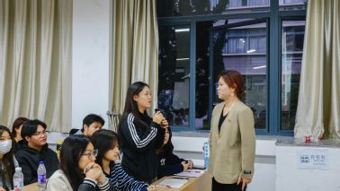 在问答环节,现场气氛活跃,同学们争相提问。针对“如何平衡学业与工作压力”这一常见困惑,孙瑜程结合自身经历,分享了具体的时间管理方法,并强调“学生干部的第一要务是学好专业课程,以优异的学业成绩立身”。当被问及“如何提升团队凝聚力”时,她强调了“真诚沟通”与“共同目标”的重要性,建议通过有意义的团建活动和清晰的任务愿景来凝聚人心。孙瑜程也向在场的同学提问,引导大家思考担任学生干部的初心。这一问一答间,不仅是经验的传递,更是一种服务精神与责任担当的薪火相传。